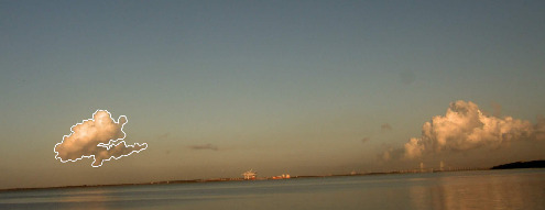 An example of two pinned clouds outlined in white sitting atop two main sources of heat from industrial facilities in the greater Houston area.